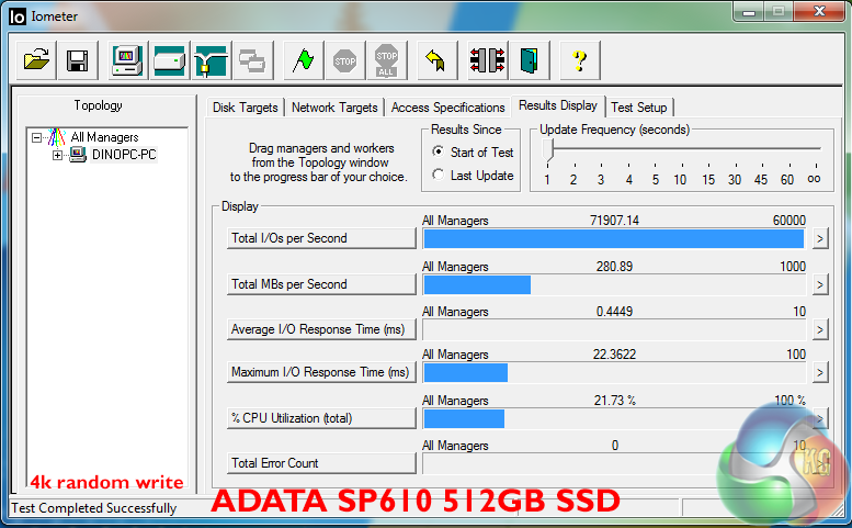 Our own results are very closely matched against the official ADATA claims, scoring between 71,000 and 72,000 IOPS.