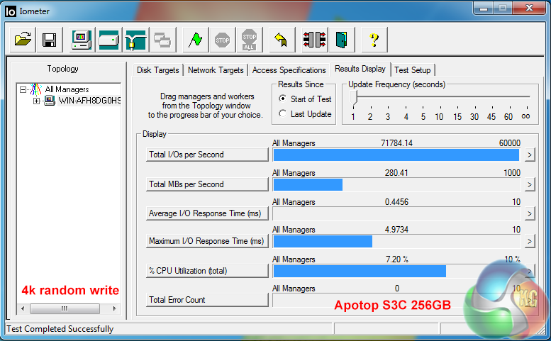 We test with both random read and write 4k tests, as shown above. There are many ways to measure the IOPS performance of a Solid State Drive, so our results will often vary between the manufacturer’s quoted ratings.