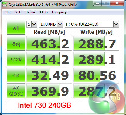 Crystalmark is a useful benchmark to measure theoretical performance levels of hard drives and SSD’s. We are using V3.0.1 x64.