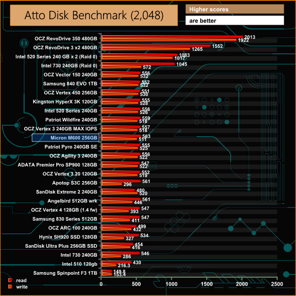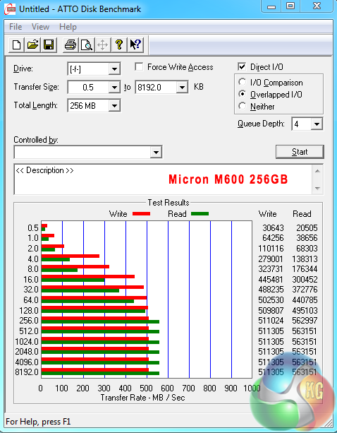 Read and write performance is excellent peaking at 560 MB/s read and 510 MB/s write. While write performance could be a little higher, the read performance is saturating the real world limitations of the SATA 3 interface.