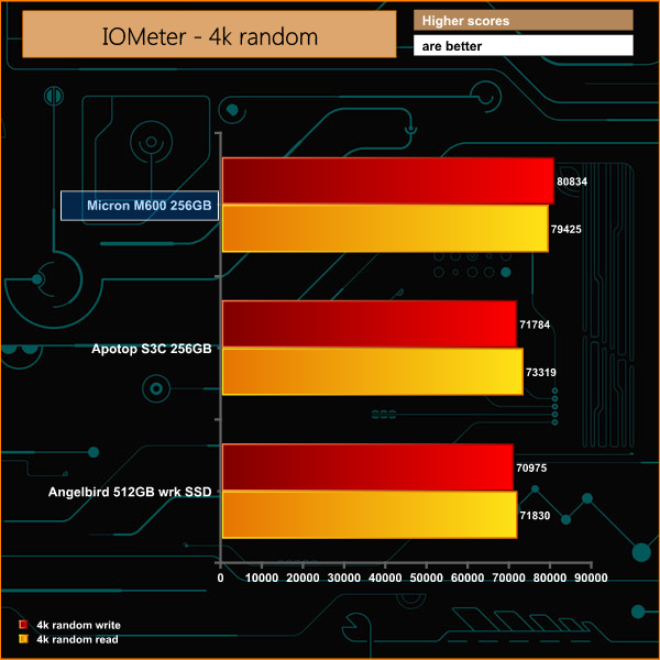 We test with both random read and write 4k tests, as shown above. There are many ways to measure the IOPS performance of a Solid State Drive, so our results will often vary between the manufacturer’s quoted ratings.