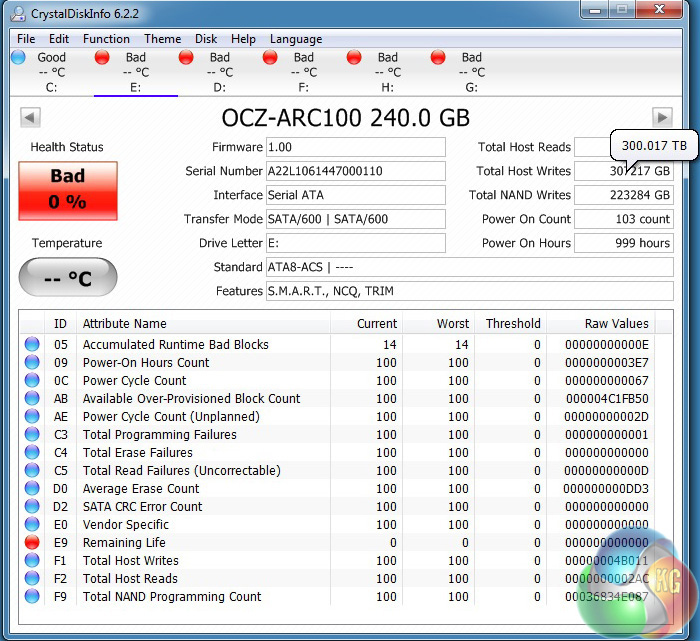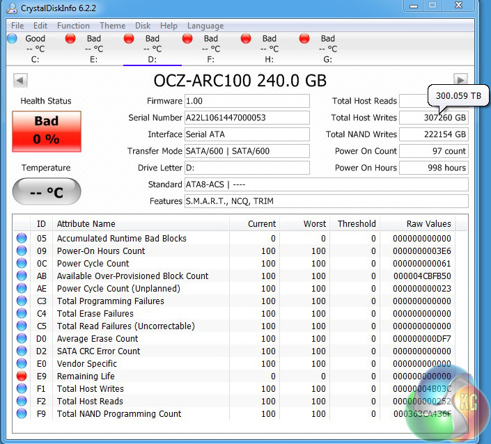 The drives all passed the warranty figure of 200TB on 23rd January 2015 – our next test was to get them all past the 300TB mark. Would any fail?
