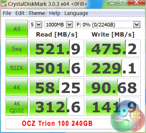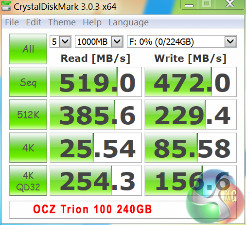Crystalmark is a useful benchmark to measure theoretical performance levels of hard drives and SSD’s. We are using V3.0.3.