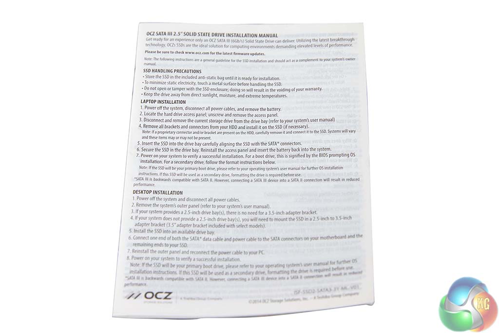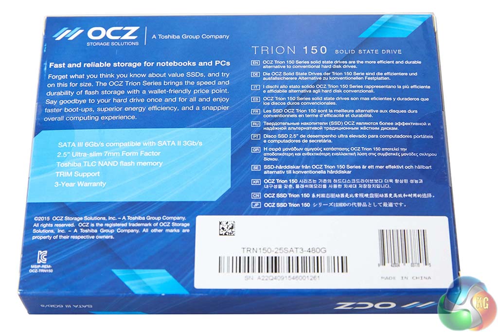 OCZ ship their Trion 150 drives in small boxes with the name and capacity clearly visible on the front. The Trion 100 drives were shipped in much plainer white boxes.