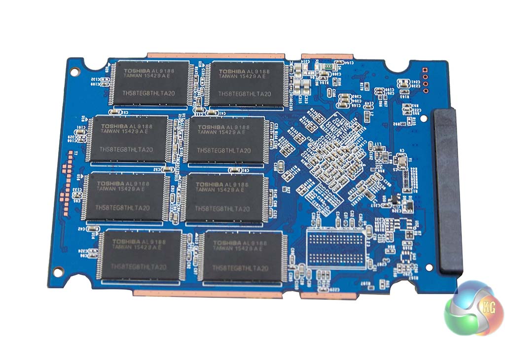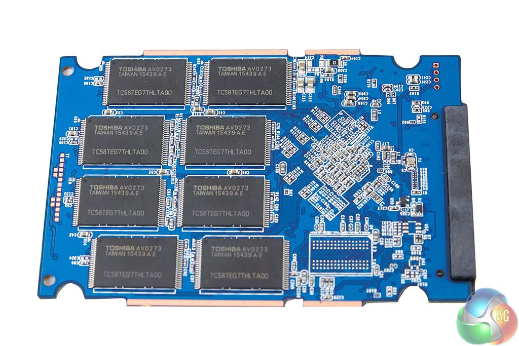 On the 240GB model, the 16 15nm NAND chips are identified with a ‘TC58TEG7THLTA00' marking. There is a NANYA cache chip which supports the main Toshiba controller.