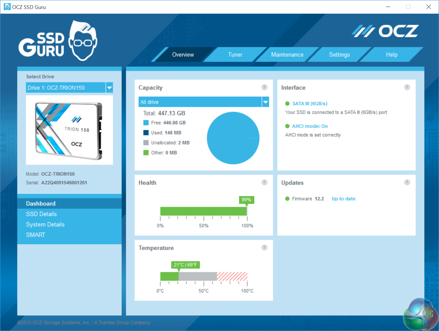 OCZ produce a software suite which is compatible with their range of Solid State drives. I took some screenshots above with the 480GB drive in the system. You can update the firmware directly through this software, which we did before testing the drives today. Most of the time you update the firmware you will not lose any data (not volatile updates) although backing up any critical data seems prudent.