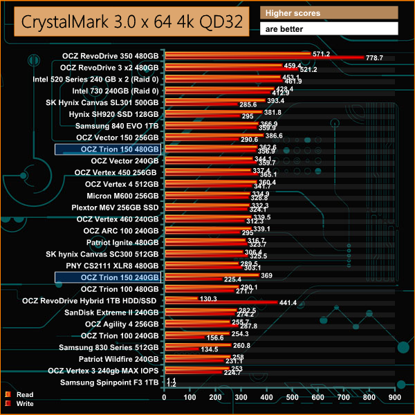 The overall performance is certainly not lacking, with the 480GB version of the drive scoring higher in the 4k QD32 write test.