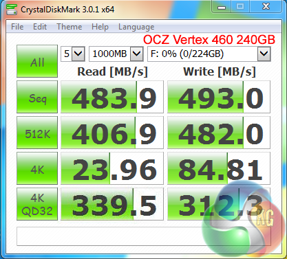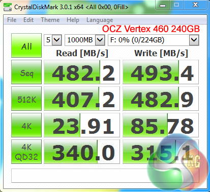 Crystalmark is a useful benchmark to measure theoretical performance levels of hard drives and SSD’s. We are using V3.0.1 x64.