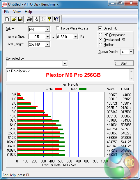 Read and write performance is excellent, hitting 544 MB/s in the read test and 488 MB/s in the write test. Not quite at the same level as the market leaders, but close.