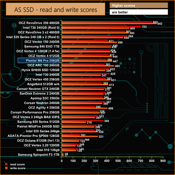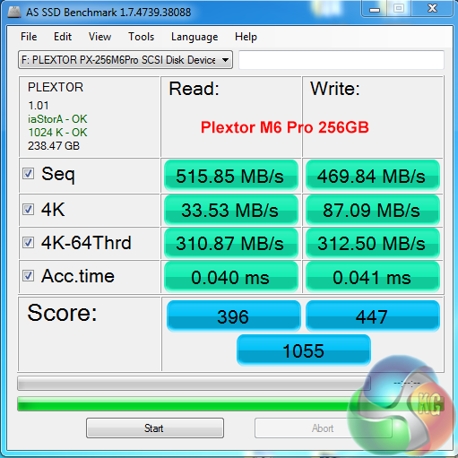 AS SSD deals exclusively with incompressible data and the Marvell 88SS9187 controller shows its strengths, with a final score of 1055 points. It rates in the top 7% of drives we have tested on Kitguru.