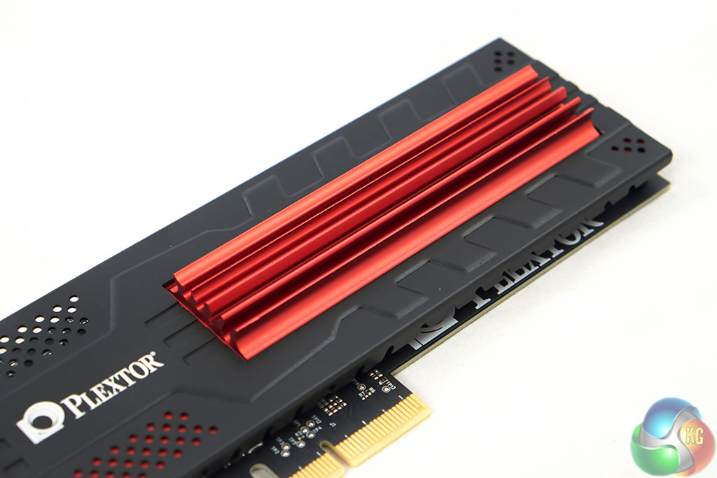 A large red heatsink takes up most of the real estate, positioned alongside the Plextor name. It is a very attractive looking card design and doesn't have any active cooling. It is highly likely the cooling block will really only be beneficial in a worse case scenario – running close to hot graphics cards and in a poorly ventilated case.