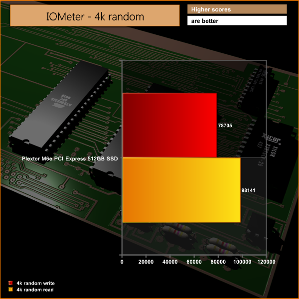 IOPS performance is very strong. We use our own testing methodology for the results. The 4k random read results are some of the most impressive we have seen in the last year rating at almost 100,000.