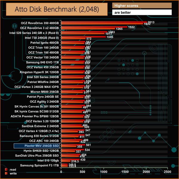 Sequential read performance is excellent, hitting 561MB/s. Write performance holds at 355 MB/s, well short of the market leaders.