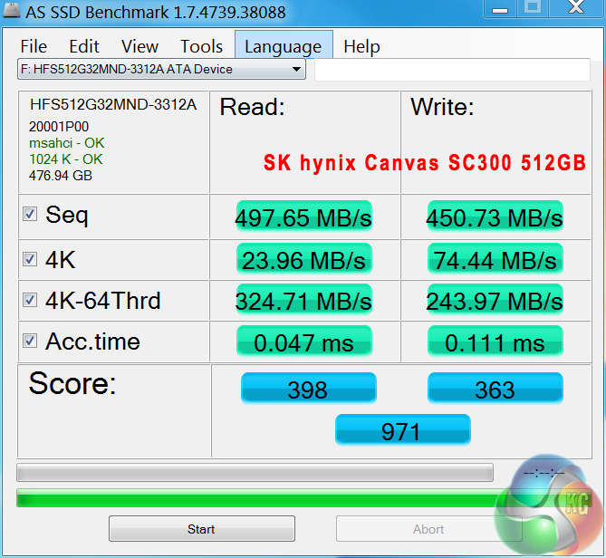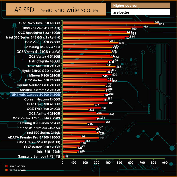 AS SSD deals exclusively with incompressible data, and we can see the SK hynix proprietary controller performs very well in this situation.