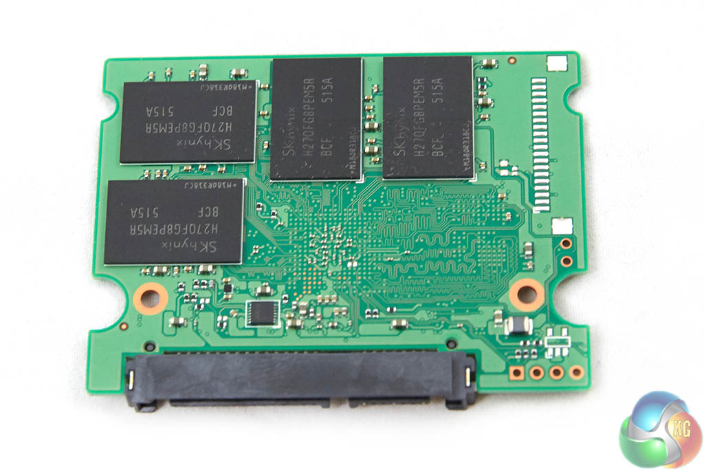 The SK hynic SL301 differs from the earlier SC300 drives – in that it is a smaller PCB inside the chassis – half length. The NAND flash is on both sides this time, rather than one. To most customers this information is irrelevant, they will never open the chassis in the first place to notice the tiny PCB. On the PCB is the SK hynix controller supported with a DDR2 cache chip and eight 16nm NAND chips.