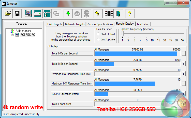 We test with both random read and write 4k parameters, as shown above. There are many ways to measure the IOPS performance of a Solid State Drive, so our results will often vary with the manufacturer’s quoted ratings.