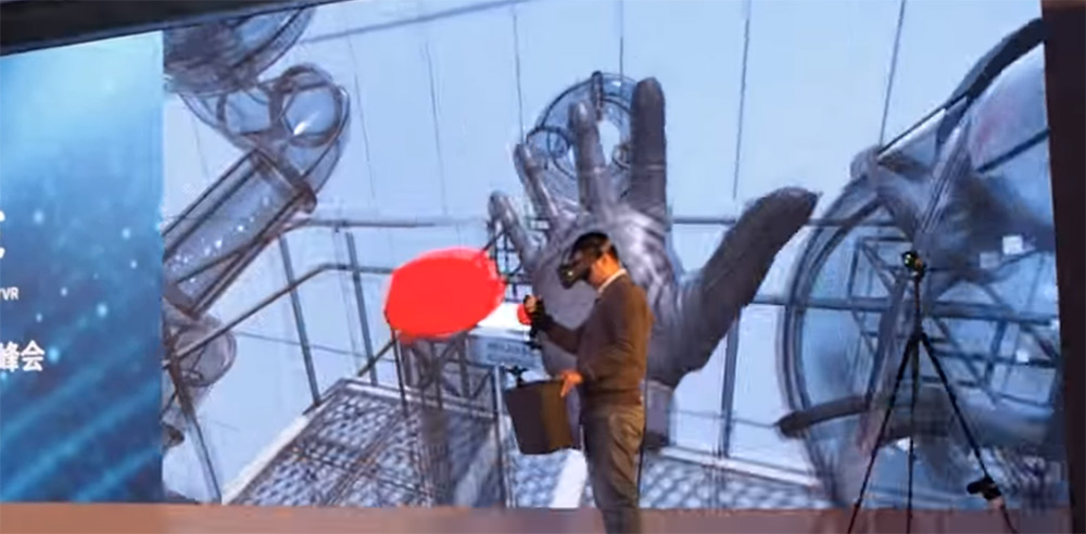 In a demo, that was supposedly put together in just three weeks, the man on stage uses the glove/tracker segment to show opening and closing of the hand, motion of individual fingers and some quite complicated locomotion. There is some twitchyness and it's not the smoothest motion ever, but it's pretty good and certainly there are more motions that can be tracked in this manner versus the lighthouse tracked controllers it's shown off before. [yframe url='http://www.youtube.com/watch?v=ABHl77XR8UA']