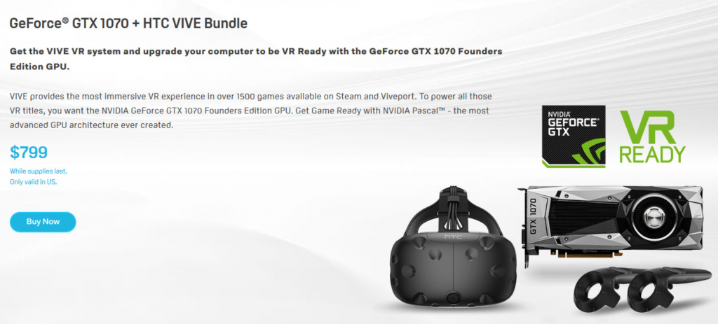 The new bundle includes the VIVE headset, Fallout 4 VR and most importantly, a shiny new GTX 1070 graphics card. This particular bundle will set you back by $799 but when you consider the value side of things, the offer is quite compelling. The VIVE usually costs $600 on its own, so you are essentially getting a game and a GTX 1070 for just $200.