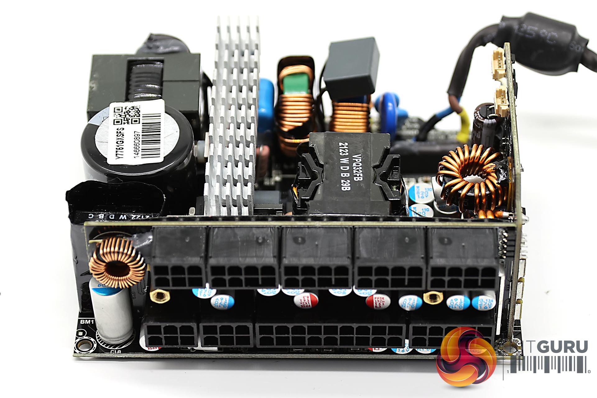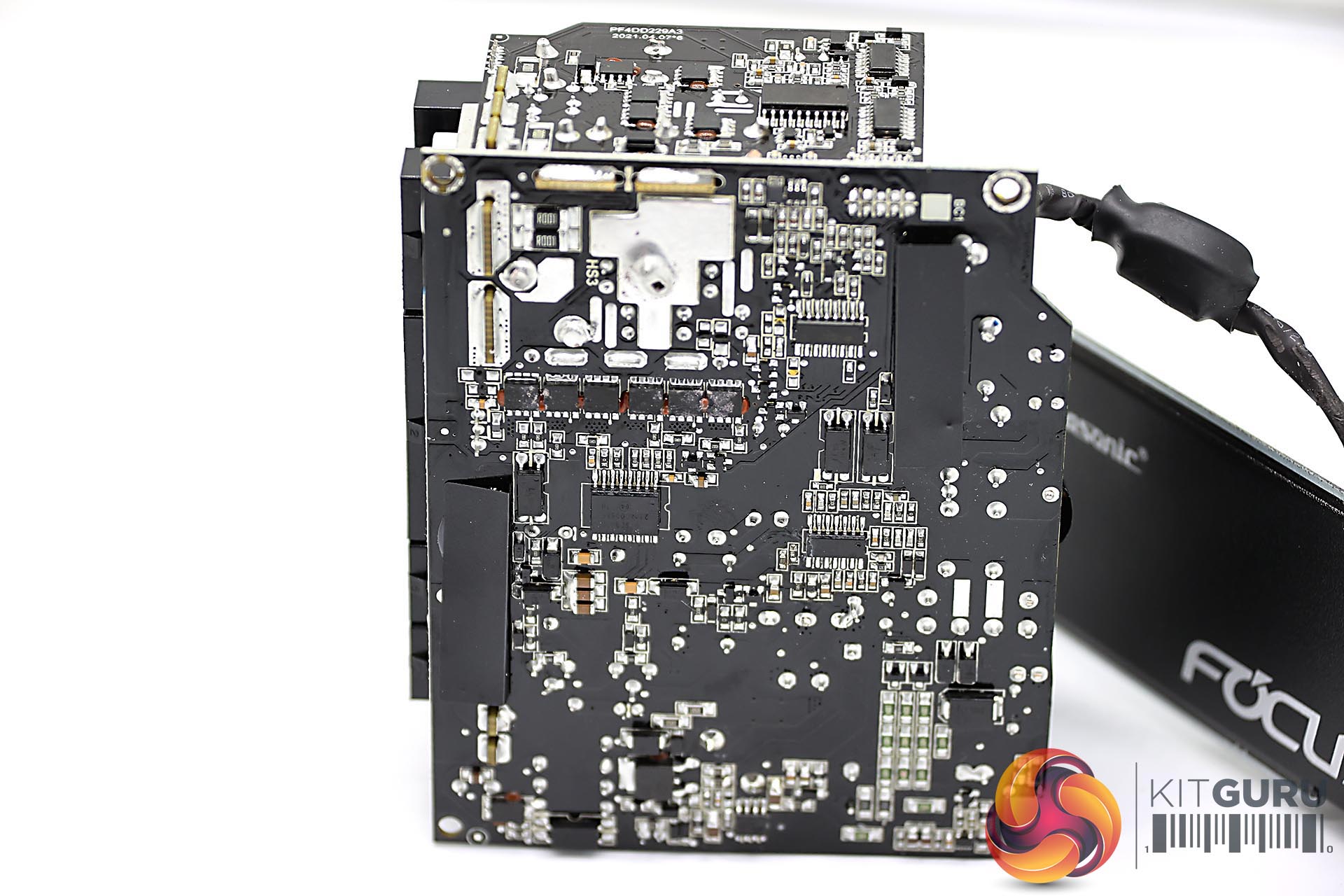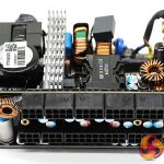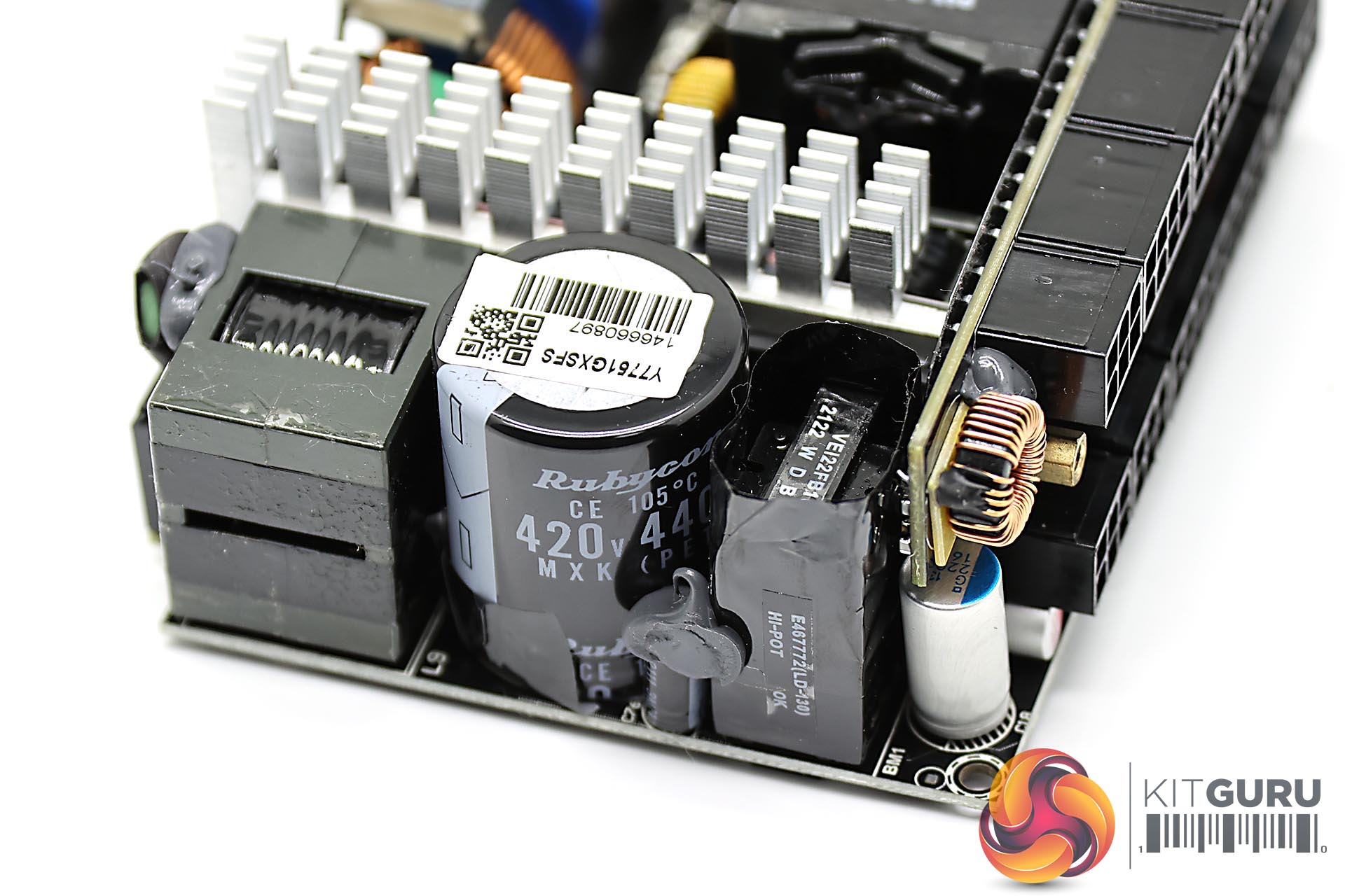 This power supply is an inhouse Seasonic design with high grade Japanese capacitors throughout primary and secondary stages. The primary stage Japanese Capacitor is made by Rubycon, rated 105C, 420V and 440uF. There is a single heatsink which gets cooled directly from the fan above. The soldering across the board is very good throughout.