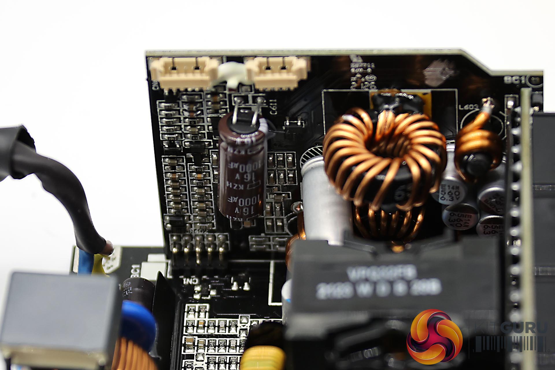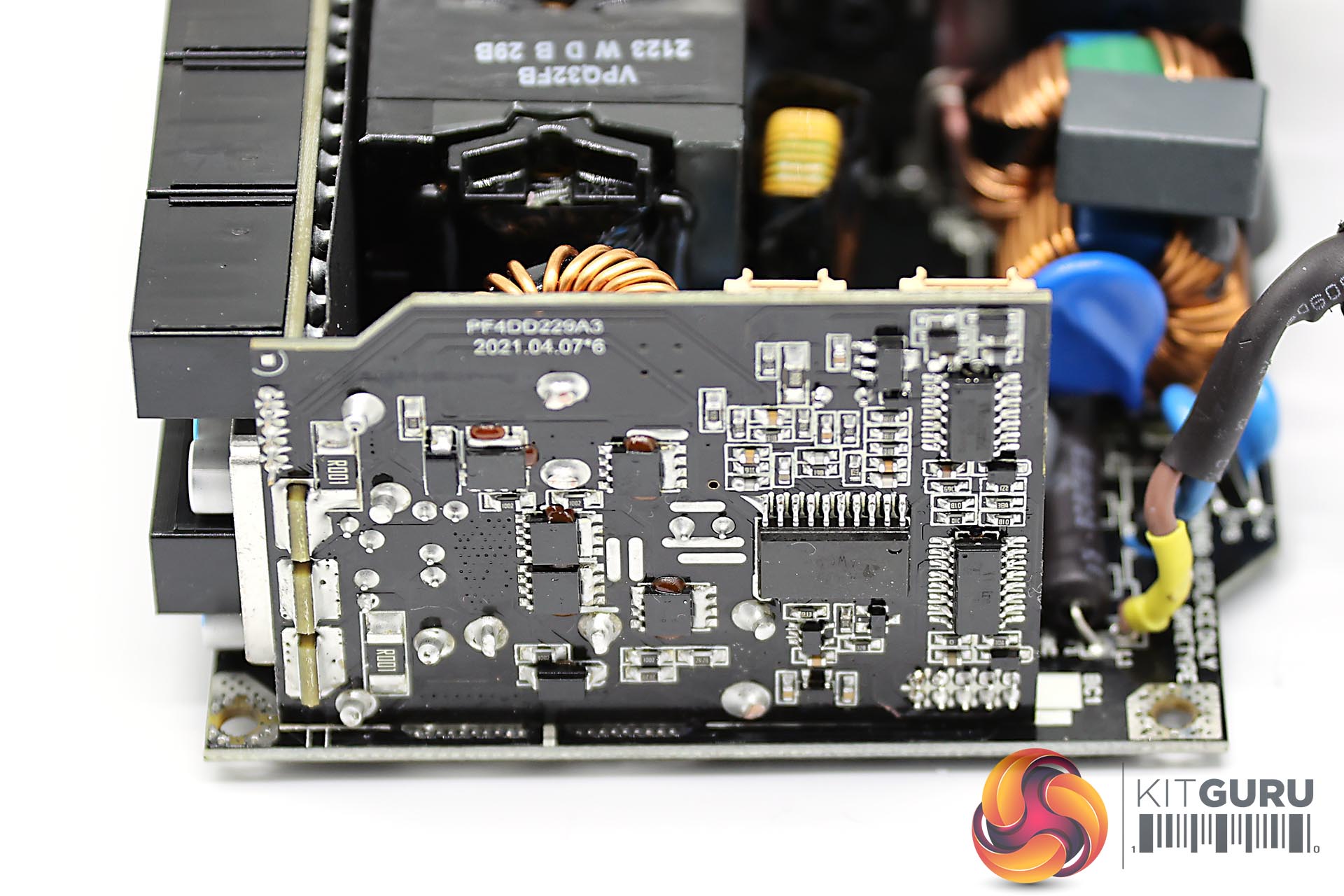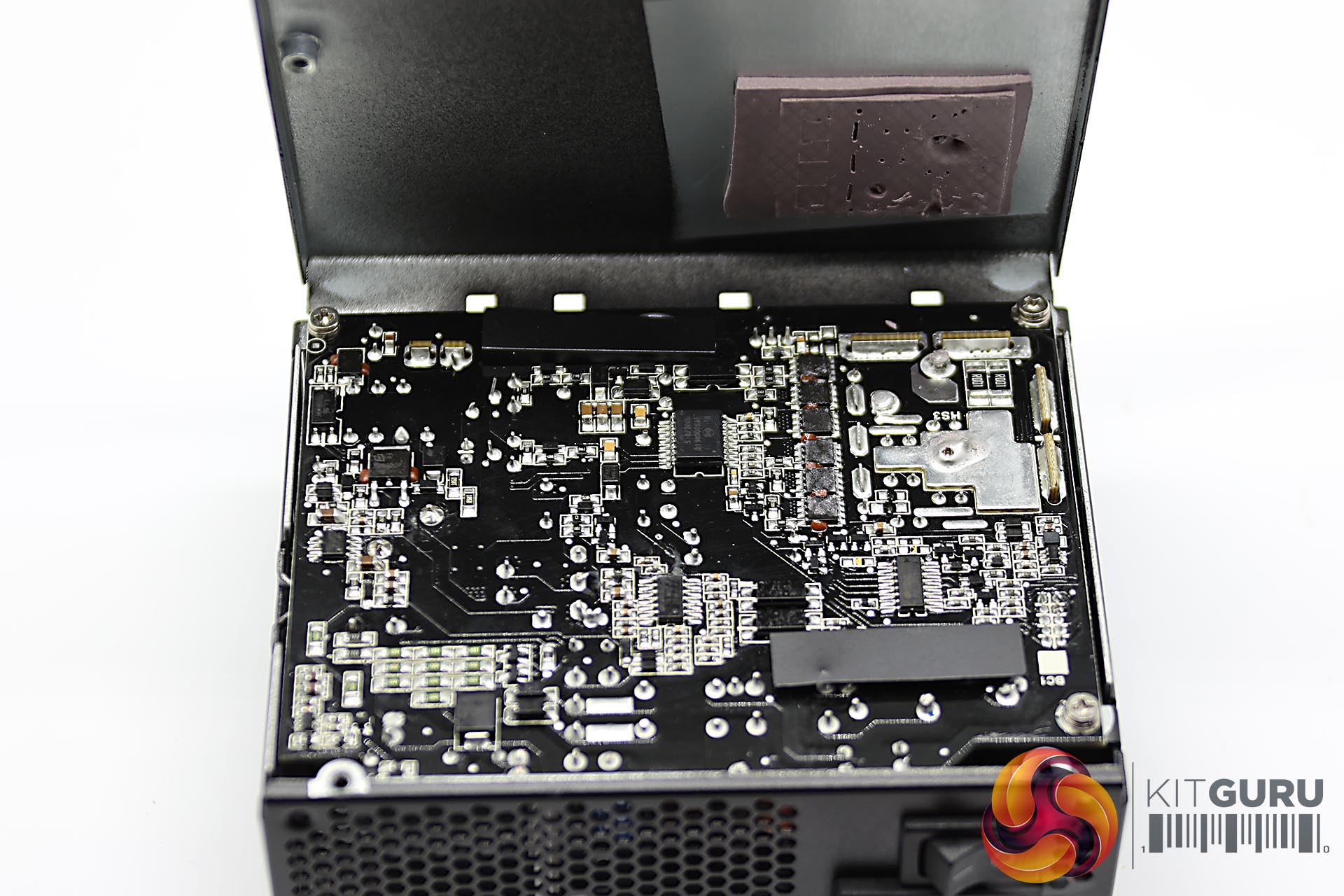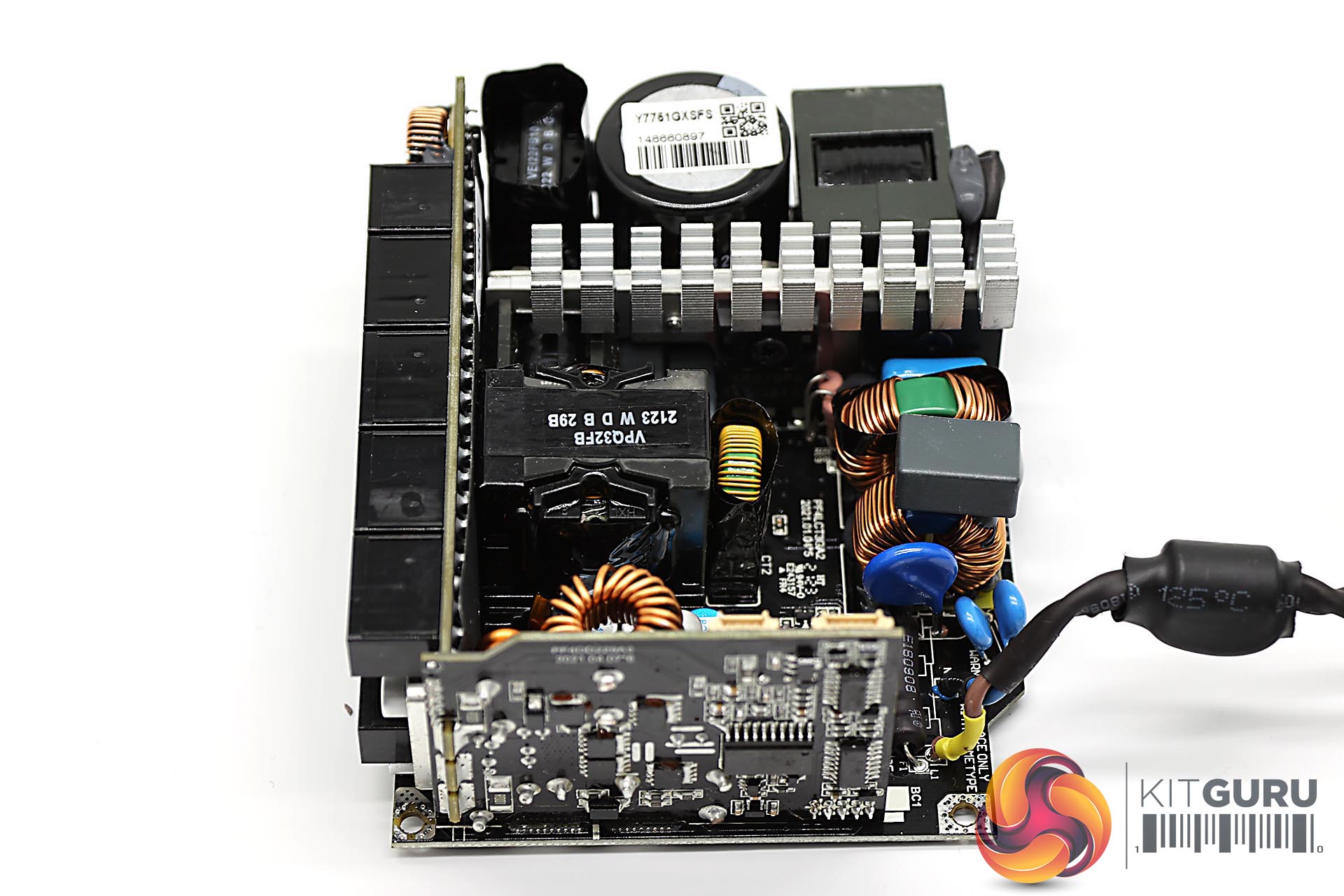This power supply is an inhouse Seasonic design with high grade Japanese capacitors throughout primary and secondary stages. The primary stage Japanese Capacitor is made by Rubycon, rated 105C, 420V and 440uF. There is a single heatsink which gets cooled directly from the fan above. The soldering across the board is very good throughout.