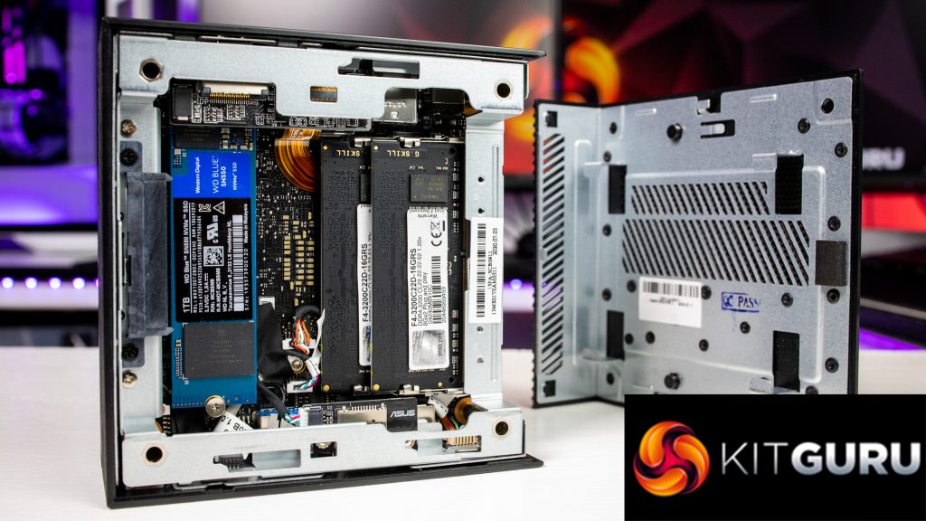 As this is a barebones system it does not come supplied with any storage drives, RAM or even operating system. Of course, depending on your use for the system will depend on what you choose to install but for our test purposes we chose 16GB of G-Skill Ripjaws SO-DIMM DDR4 3200MHz RAM and 1TB WD Blue SN550 NVMe SSD.