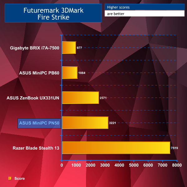 Despite having just integrated AMD Radeon Vega 7 graphics, the PN50 still proved to pack a punch in comparison to the other systems during our 3DMark Fire Strike benchmark, taking second place again.