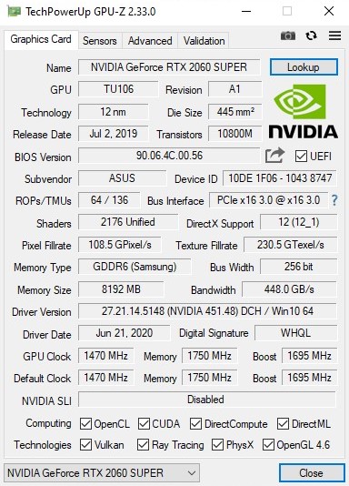 - ASUS RTX 2060 Super 8GB Dual Evo V2 OC
