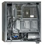We’ve got an all-black “murdered out” theme and I’m actually really enjoying this stealthy vibe because not one component lets the theme down, everything is pitch black and it looks excellent. The other thing to note is the case choice is excellent for the chosen components, it’s not overly cramped, nor is there lots of empty space within. Cable management is very good both in the front and behind the back panel too, which is always nice to see. They’ve definitely taken care and attention to detail when putting this system together.