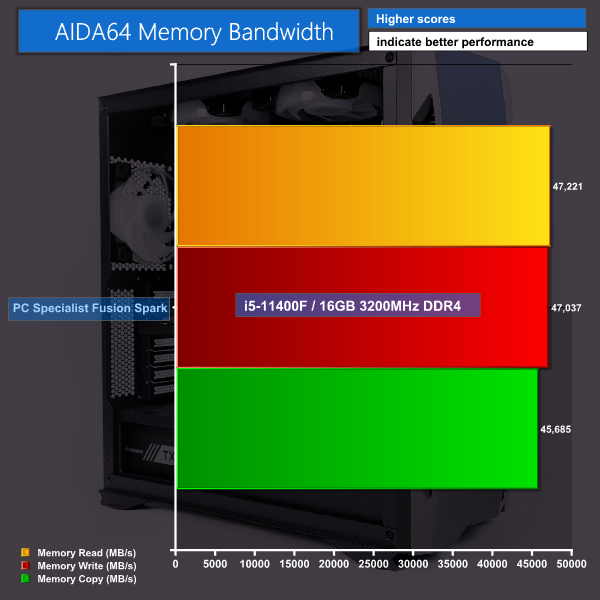 As expected, our Corsair Vengeance 16GB RAM at 3200MHz performed well during our AIDA64 memory benchmarking test.