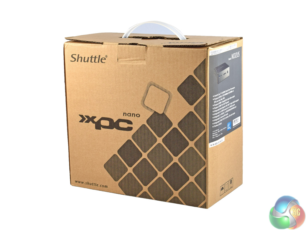 The Shuttle XPC Nano NC02U5 ships in a fairly plain brown box – there is just some branding on the front, without a product image.
