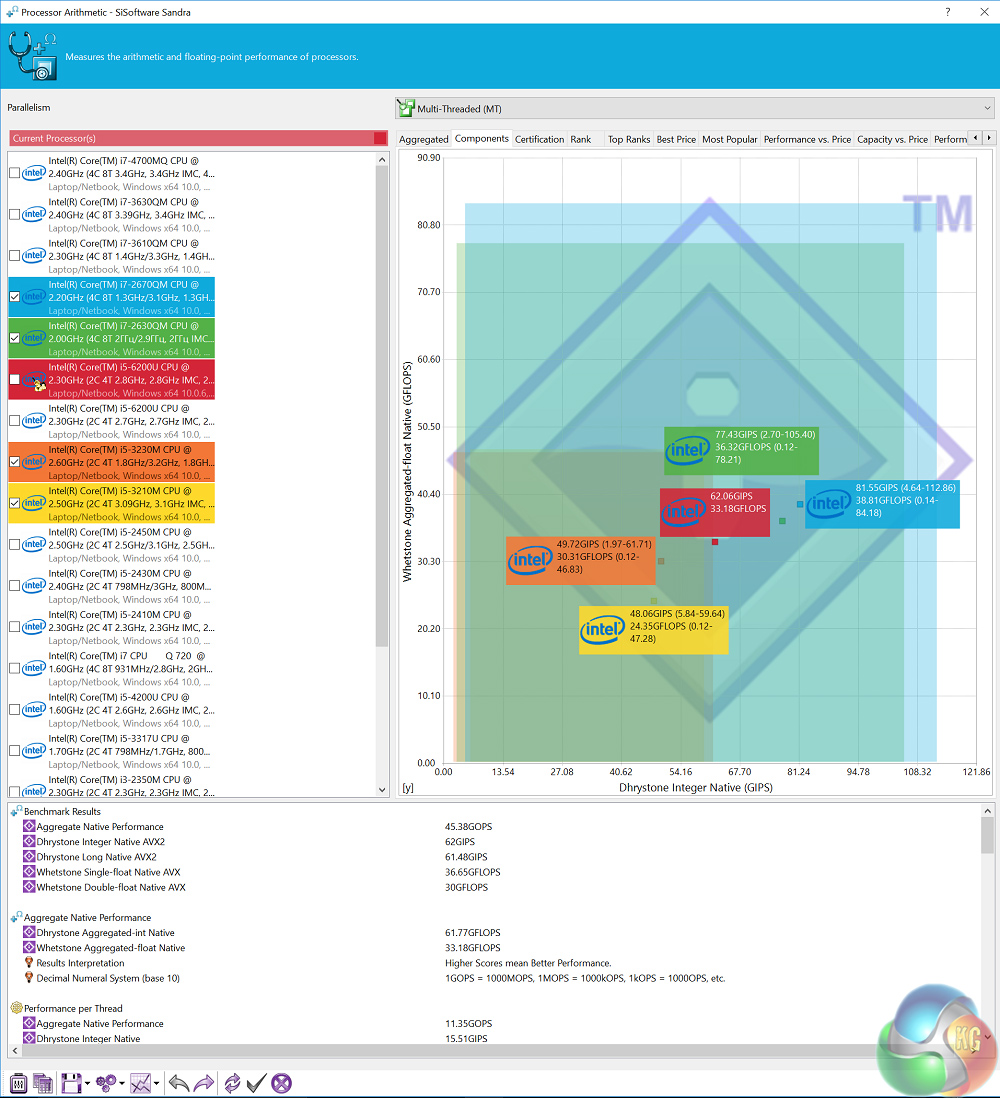 Lastly, Sandra Arithmetic follows the same trend we have already seen. The i7-7500U is obviously faster – but as both chips are dual-core with HyperThreading, the main difference in the results is due to the lesser clock speed of the i5 CPU.