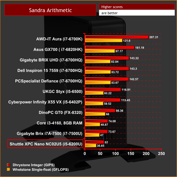 The last test for the CPU, I ran Sisoft Sandra’s arithmetic test – a synthetic benchmark.