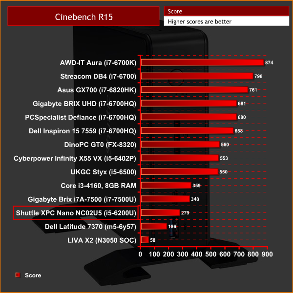 Interestingly, the Skylake i5 used here in the XPC Nano NC02U5 operates at about 80% of the speed of the latest i7-7500U – in Cinebench R15, at least.