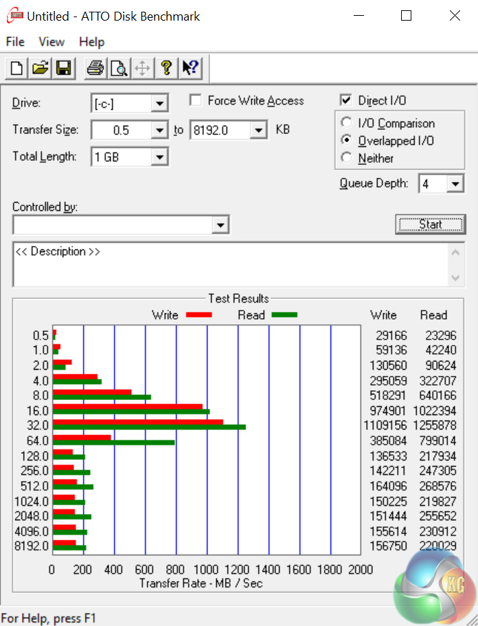 To test this, we benchmarked our PCIe, NVMe Toshiba OCZ RD400 using CrystalDiskMark and ATTO Disk Benchmark.