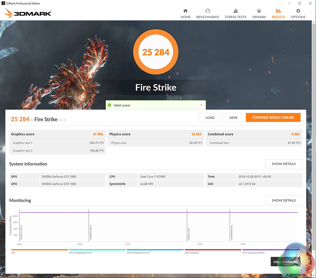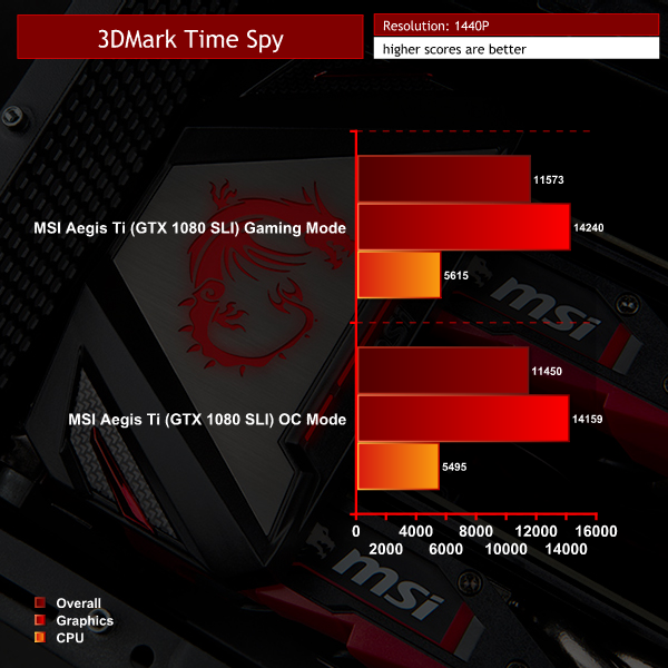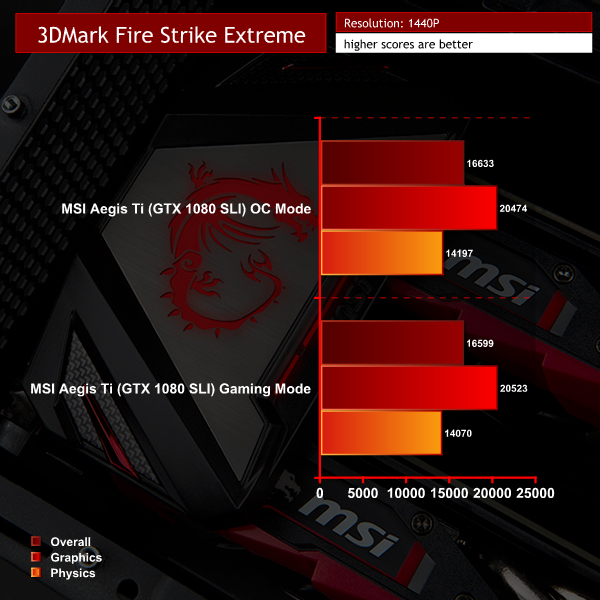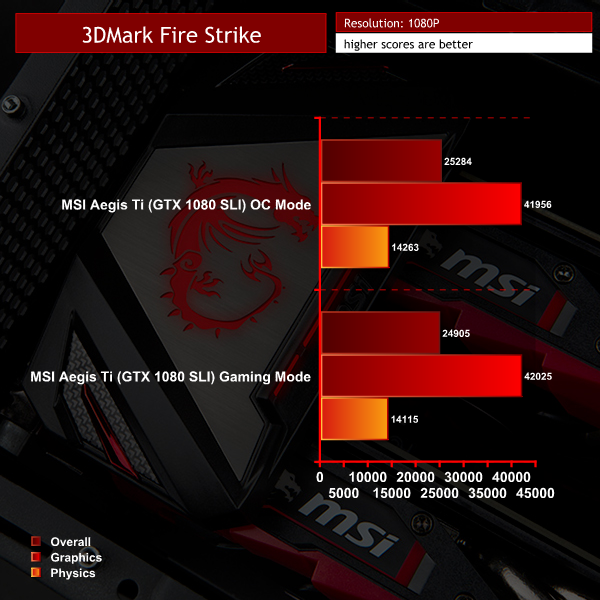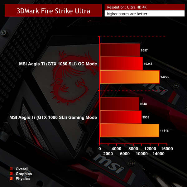 Strong performance is shown in the 3DMark tests. A pair of GTX 1080s in SLI creates superb results.