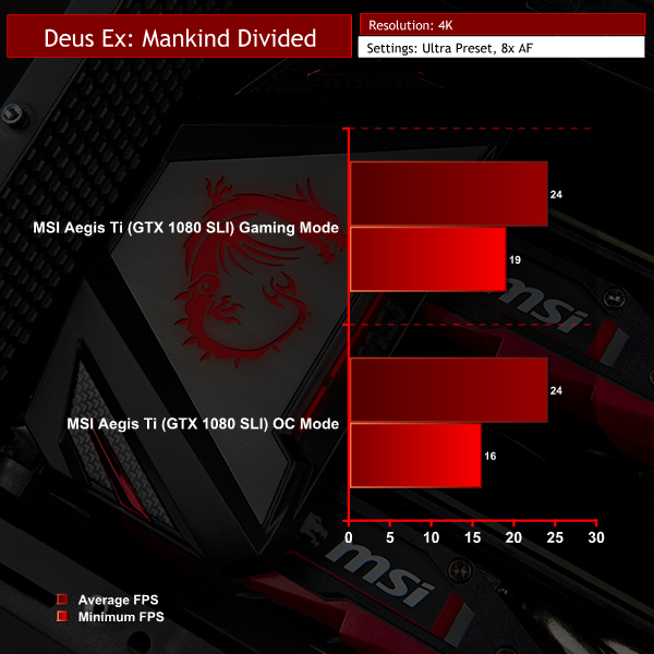 Aegis Ti performed admirably and delivered a superb gaming experience. The single issue we had was with Deus Ex where the frame rate was only 24fps on average. We have previously seen 36fps on the same settings and expected at least 40fps. We are confident the problem lies with the GeForce 375.63 driver and that MSI is blameless.
