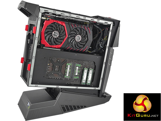 MSI could have simply used a conventional chassis containing the excellent cooling hardware but they have gone down their chosen route. The result is a superb gaming PC that some people will admire whilst other will find a little gaudy. The fact it is hard to work inside the chassis is a negative point.