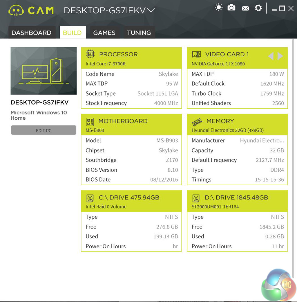 - CPU: Intel Core i7-6700K 4.0GHz OC to 4.6GHz