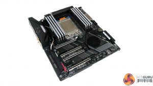 Gigabyte’s TRX40 Aorus Master motherboard forms the backbone of our system. We reviewed this motherboard recently and were impressed by the overall design as well as the superb VRM components with a true 16-phase PWM controller.