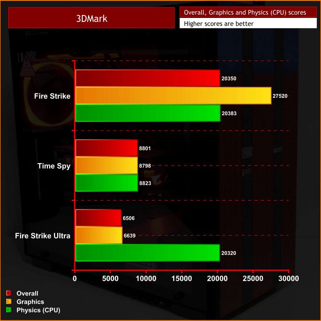 For 3DMark, I put this system through Time Spy, Fire Strike and Fire Strike Ultra – with the results as expected across all three benchmarks.