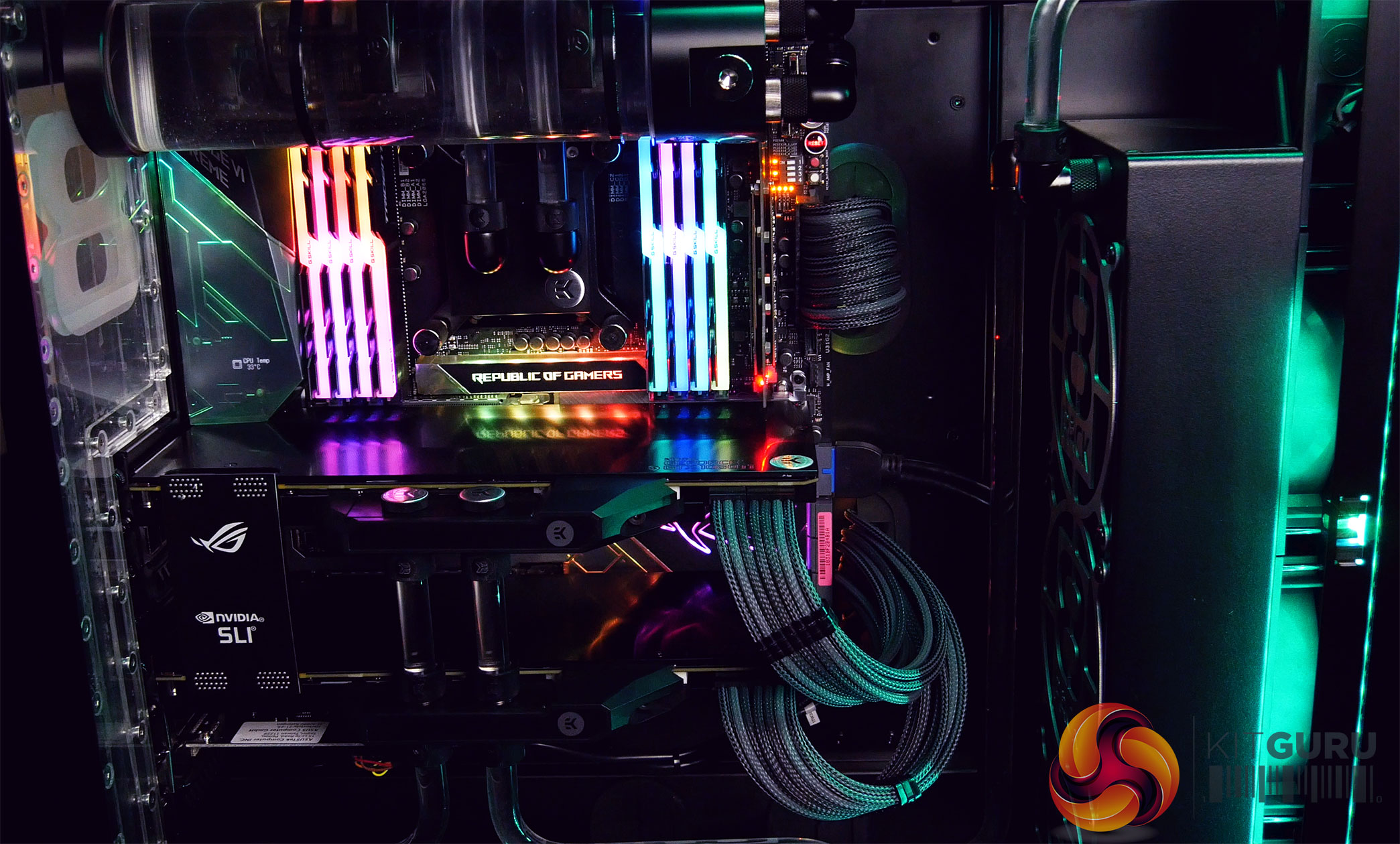 Fitted with EK Full Cover Waterblocks and Overclocked to maximum stable overclock.