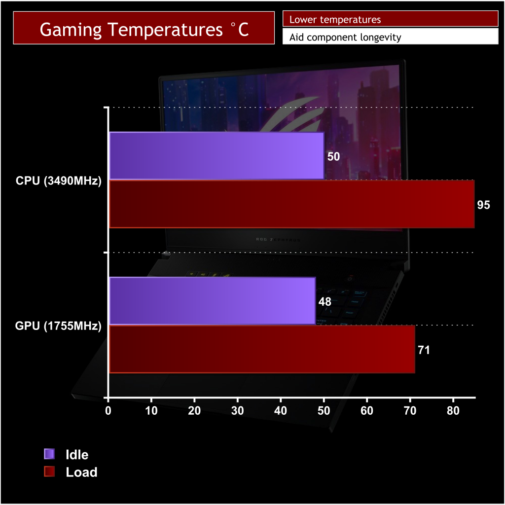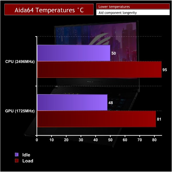 Aida 64 is a worst case scenario but if you're looking to spend hours gaming on this laptop I found it got just as hot while benchmarking games. The laptop was able to maintain a higher boost clock which meant that gaming performance didn't suffer but 95C is not where a CPU should be sitting for a prolonged gaming session.