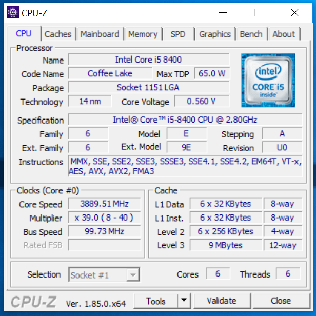 Processor: (CPU) Intel® Core™ i5 Six Core Processor i5-8400 (2.8GHz)