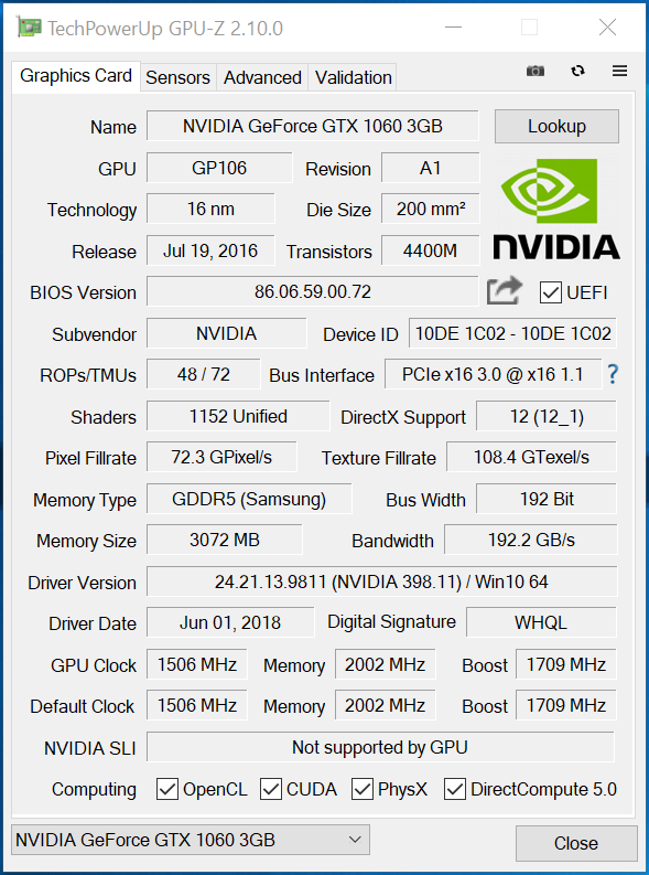 Graphics Card: 3GB NVIDIA GEFORCE GTX 1060 – DVI, HDMI, 3 x DP
