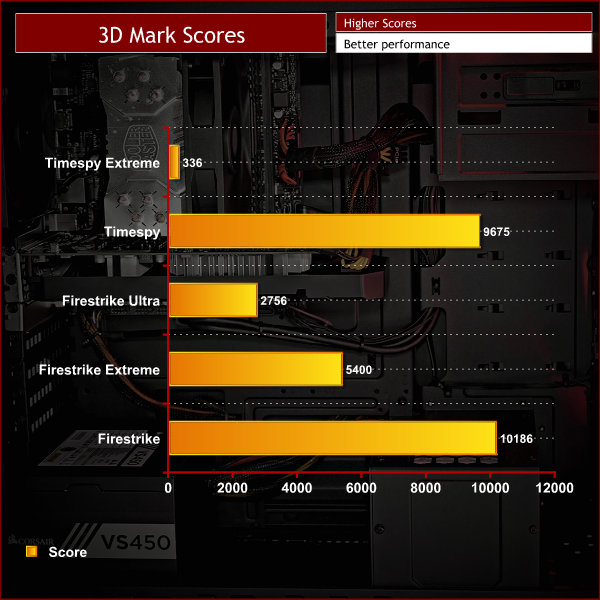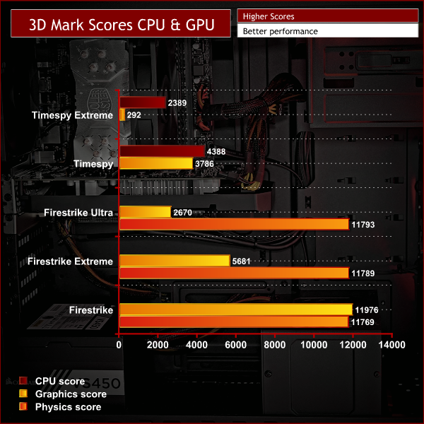 For this test, we ran the PC Specialist Enigma R1 through Time Spy Extreme, Time Spy, Fire Strike, Fire Strike Extreme and Fire Strike Ultra. We first look at the overall scores given at the end of each test.