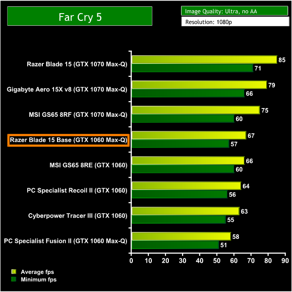 Far Cry 5 is the most recent release we tested. The gigantic open world of Hope County has plenty of beautiful scenery to test how well this laptop performs with a newer game.