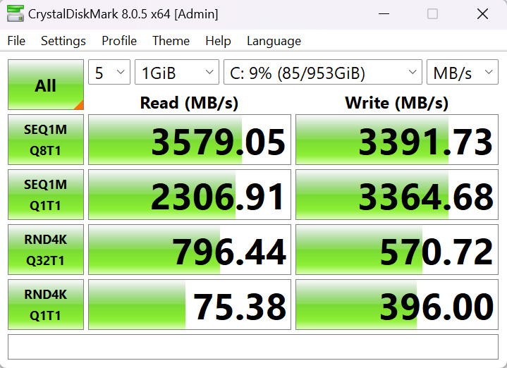 Finally, SSD speeds are somewhat disappointing considering the price of the machine. As we mentioned, Acer is using a pair Micron PCIe Gen3 SSDs and as such, we don't see speeds exceed 3600MB/s. It'll be fine for gaming but when Gen5 SSDs are readily available, it does feel a definite step back.