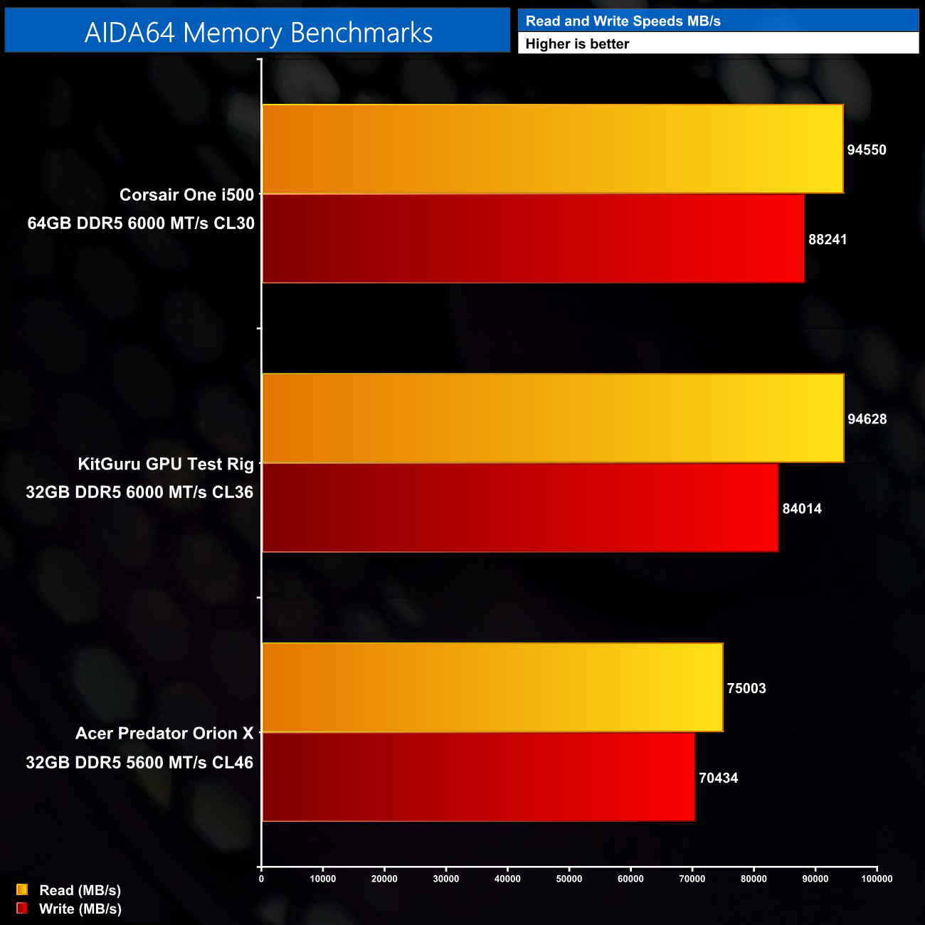 Memory bandwidth also shows the Orion X to be slightly lacklustre, hit around 75,000 MB/s read and 70,000 MB/s write. I also re-ran this test with XMP enabled and speed increased to about 82,000 MB/s and 76,000 MB/s, respectively, so about 9% extra memory bandwidth has been left on the table due to XMP being turned off by default.