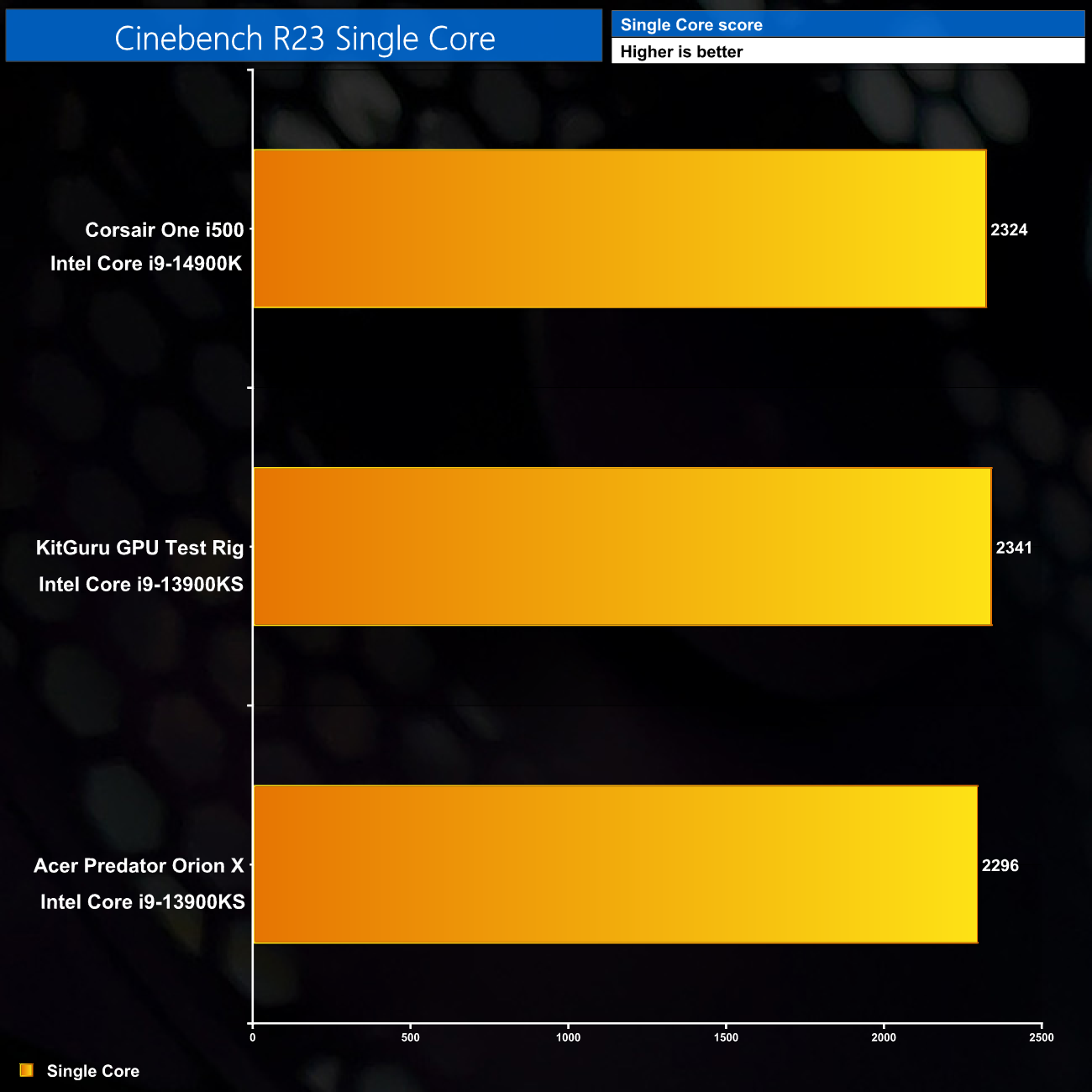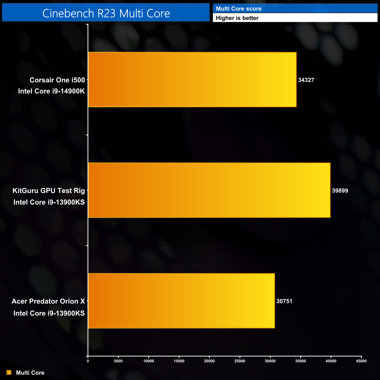 Starting with Cinebench Multi Core then, we see a sizeable performance loss for the Orion X when compared to our own GPU test rig with the same CPU – the Orion X scores about 23% lower due to its clock speed deficit.