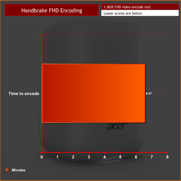 It should go without saying that the Revo One is not for gaming. I have seen the integrated Intel HD 5500 graphics unit a few times now, and it simply lacks the grunt necessary for real games. Still, the Revo One gives fast benchmark scores, particularly in the video encoding test – 6:57 is the quickest encode time I have seen from any PC that I have worked with here at KitGuru.